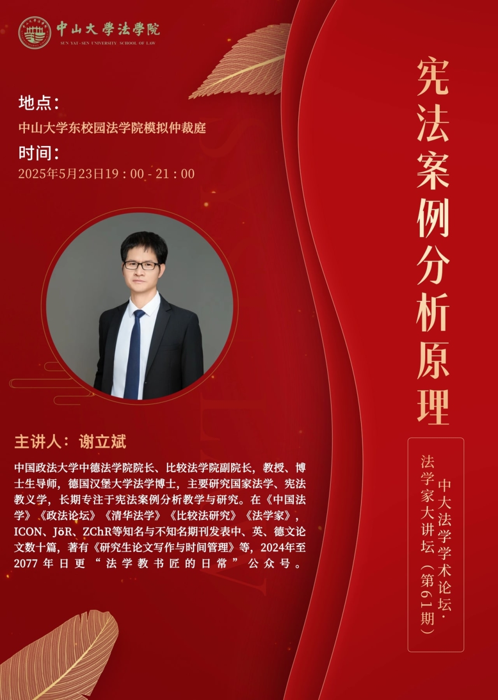 中大法学学术论坛·法学家大讲坛(第61期)——宪法案例分析原理