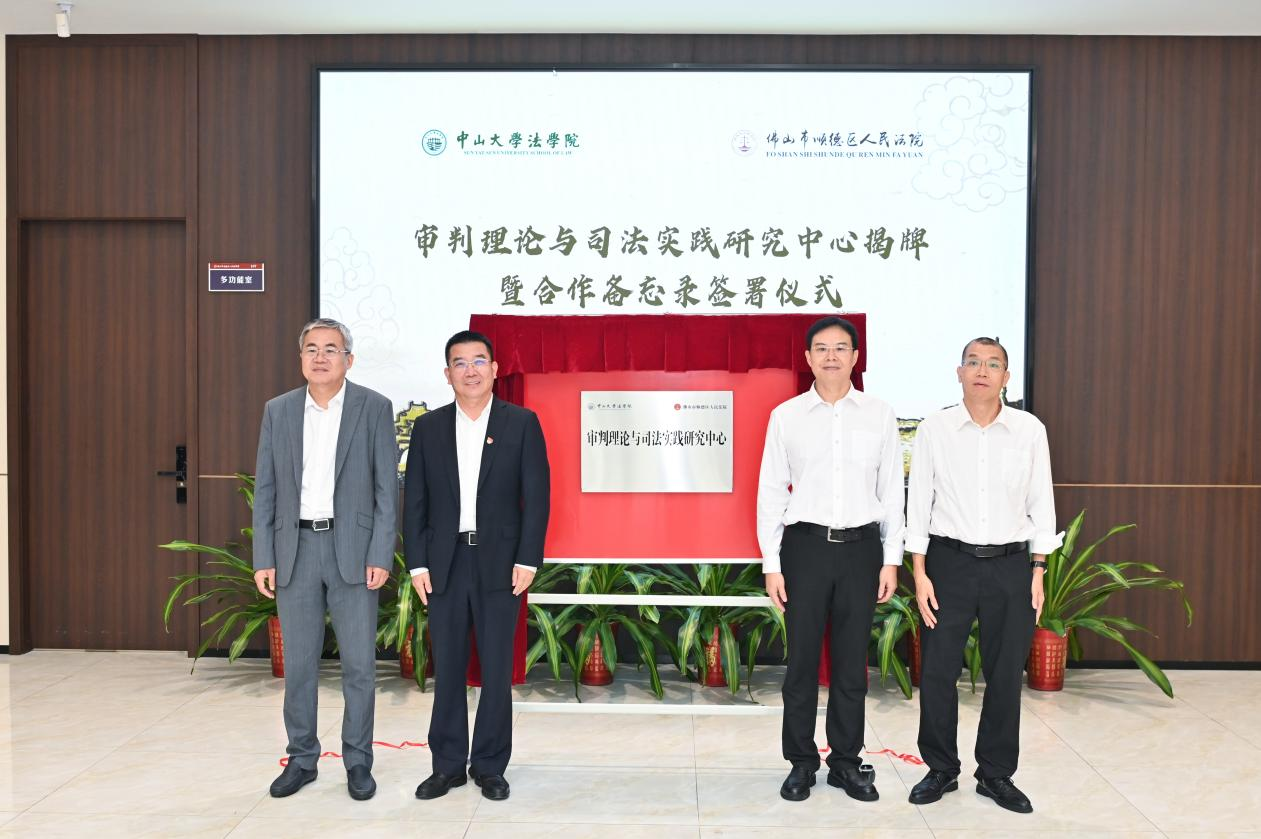 为深化新时代院校合作,打造院校合作典范,进一步促进学院与实务部门合作,加强学术与审判一线的交流,10月22日,直播性爱 与顺德法院共同举行审判理论与司法实践研究中心揭牌暨合作备忘录签署仪式。直播性爱 党委书记梅成达、院长张亮、党委副书记侯雪莹,顺德法院党组书记、院长郭文东,党组成员、副院长周子昌等出席揭牌仪式。